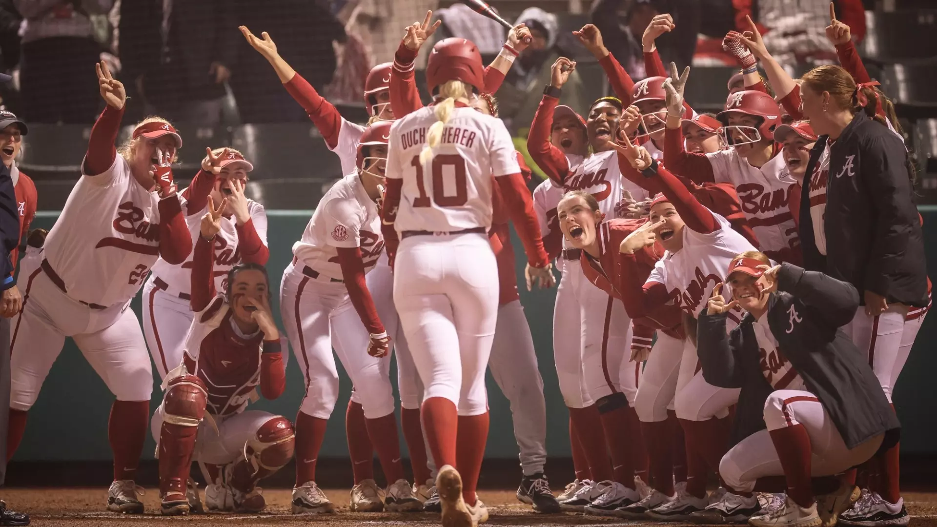 Alabama (18-0) took the first lead of the game with a first inning two-run home run from Abby Duchscherer before Arizona (16-2) got on the board in the next half-inning with a solo homer. The Tide loaded the bases in the third inning but could not add to its lead and the Wildcats left a combined four runners on base through the sixth inning.